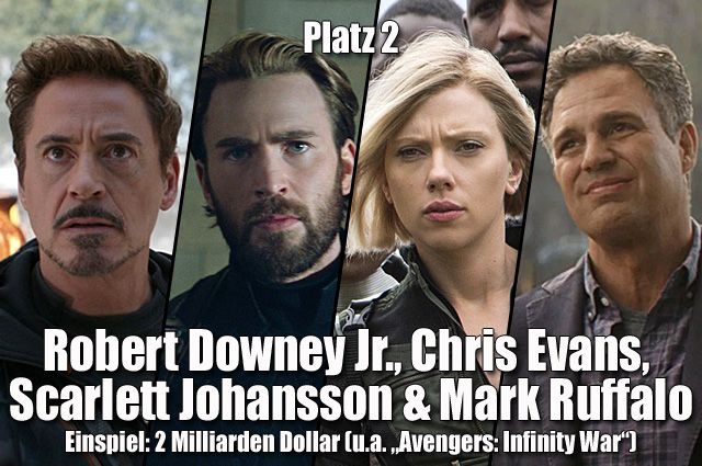 Generell ist beim Zustandekommen der Liste noch wichtig zu wissen, dass Forbes sich für die Werte auf die Website Box Office Mojo beruft und für die jeweiligen Darsteller nur jene Filme berücksichtigt, in denen sie als Hauptdarsteller gelistet werden und/oder die meiste Screen-Time haben. So ist auch zu erklären, dass Chadwick Boseman etwas abgeschlagen hinter den anderen „Avengers“ landet, ist bei ihm doch nur das (ebenfalls beachtliche) Einspielergebnis seines „Black Panther“-Soloauftritts in das Ranking eingeflossen, nicht aber sein vergleichsweise kleiner Part in „Avengers 3“. Das Gleiche gilt für „Star-Lord“ Chris Pratt, für den nur das Dino-Sequel „Jurassic World 2: Das gefallene Königreich“ gewertet wurde, weswegen er sich seinen fünften Platz auch mit Co-Star Bryce Dallas Howard teilt.