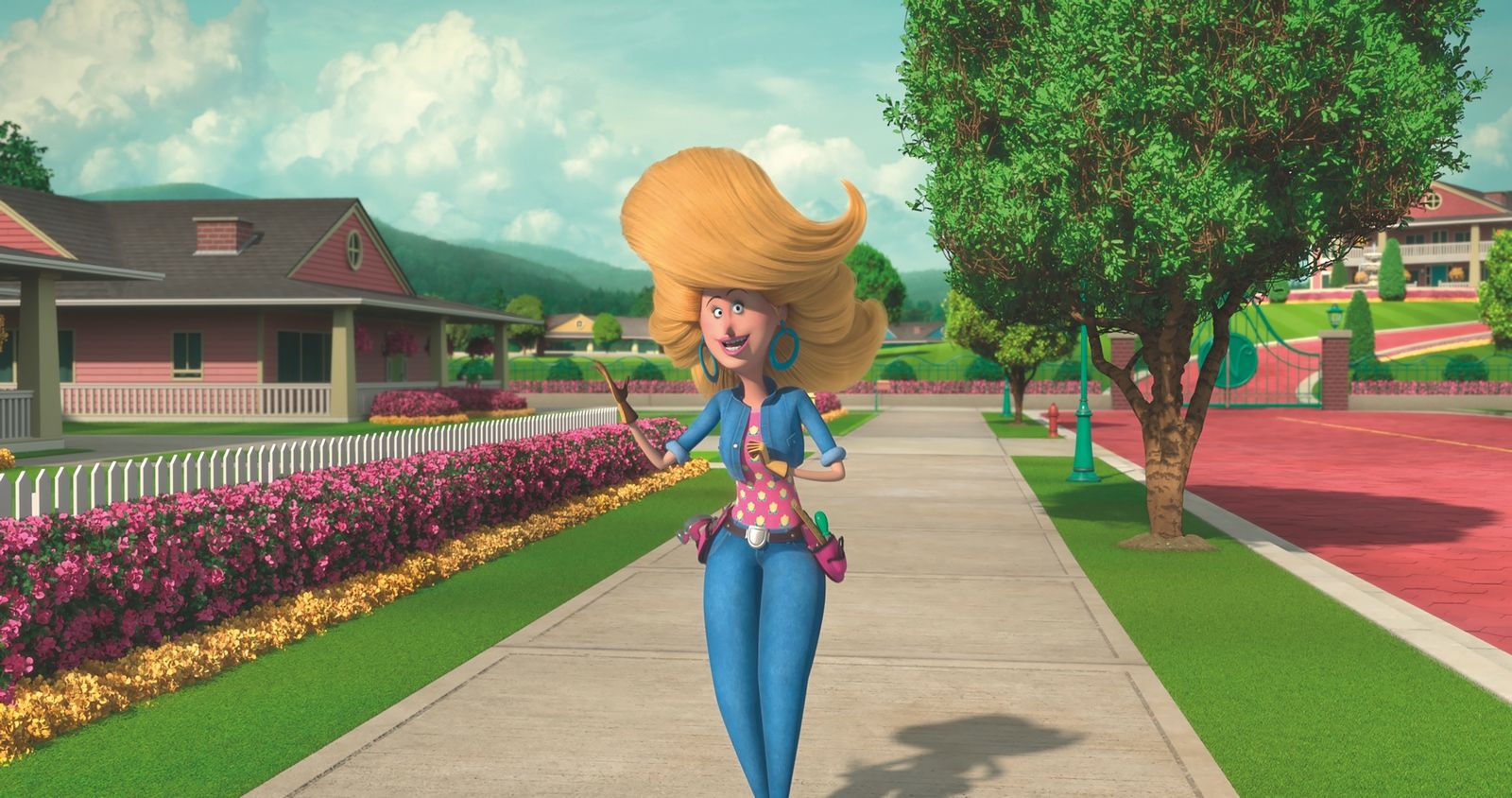 … wobei sich die Macher auch eine kleine politische Spitze erlauben. Die trotz ihrer makabren Interessen und Vorlieben ja doch sehr netten Sonderlinge werden hier mit einem echten amerikanischen Alptraum konfrontiert, der, nicht nur der toupierten Frisur nach zu urteilen, offensichtlich ein reales Vorbild hat: In ihrem rücksichtslosen Größenwahn und mit der Verbreitung von fiesen Fake News über die unerwünschten „Andersartigen“ erinnert die quotengeile TV-Moderatorin Margeaux Needler nicht nur ganz entfernt an einen gewissen amerikanischen Präsidenten. In dem von ihr entworfenen Plastik-Habitat mit dem vielsagenden Namen „Assimilation“ haben Außenseiter mit fremdartigen Gebräuchen keinen Platz.