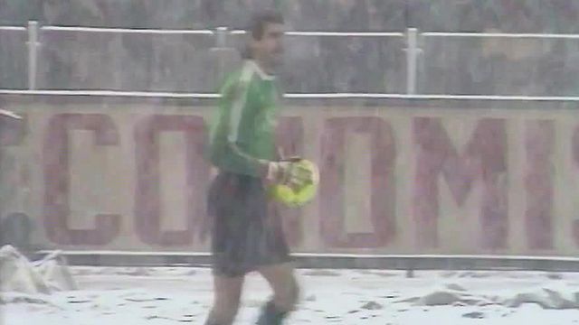 Was zunächst auffällt, ist die im Vergleich zu heutigen Fußballübertragungen erstaunlich schlechte Bildqualität. Diese wird zusätzlich dadurch geschwächt, dass man die Aufzeichnung einer alten VHS-Kassette sieht, die die ohnehin leicht verwaschenen Bilder noch zusätzlich unscharf erscheinen lässt. Da zudem ein ständiges Schneetreiben tobt, kann man vom eigentlichen Spiel kaum etwas erkennen. Schade eigentlich, denn Steaua Bukarest zählte Ende der 80er Jahre zu den stärksten Mannschaften Europas, gewann 1986 gar den Europapokal der Landesmeister und stand ein halbes Jahr nach dem hier zu sehenden Match gegen den Lokalrivalen Dinamo noch einmal im Finale, dem legendären 0:4 gegen den AC Mailand. Dass das Spiel hier aber kaum Höhepunkte liefert, öffnet letztlich den Blick für die scheinbaren Nebensächlichkeiten. Da fällt einem dann etwa die geringe Anzahl der Kameras auf, die das Spiel aus kaum mehr als zwei, drei Perspektiven zeigen oder die Einblendung eines leuchtenden „R“ in der oberen Ecke, wenn eine der wenigen Zeitlupen eingespielt wird.