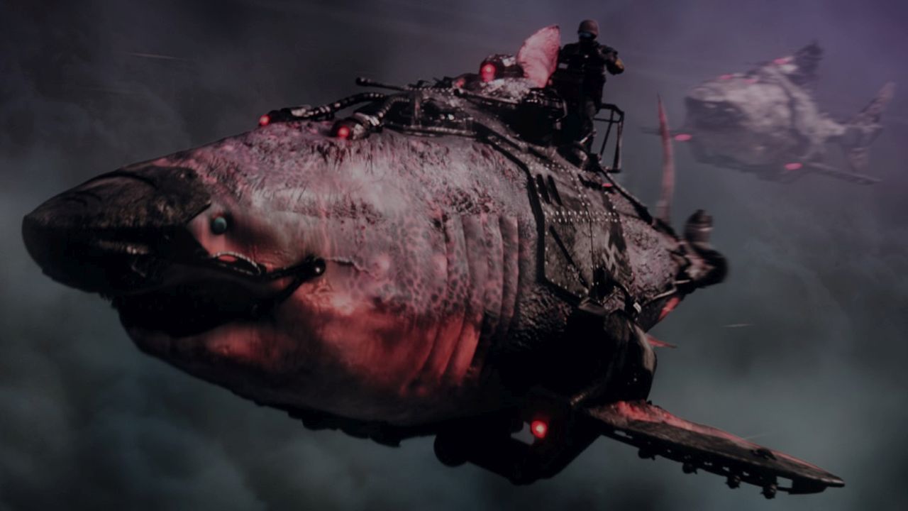 Denn „Sky Sharks“ hält das Tempo der Auftaktsequenz nicht ansatzweise durch: Die satirischen Werbespots für Richter Dynamics, die Medienberichte von Angriffen fliegender Haie („Sharknado“ lässt grüßen) sowie eine quälend lange Konferenz mit einem martialischen US-General („Candyman“ Tony Todd) wirken zwar optisch geleckt, aber sind dabei so beliebig und spannungsarm aneinandergereiht, dass es auf Dauer auch ganz schön ermüdet.