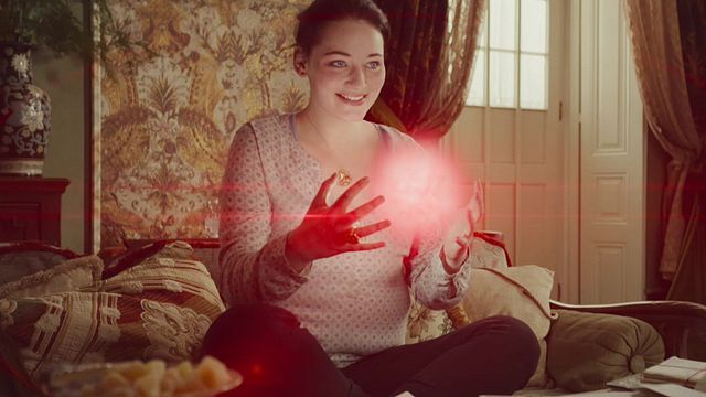 In „Saphirblau“ ging es ganz zentral um die verhinderte Romanze zwischen Gwen und Gideon, die schwierige Teenie-Beziehung steht nun auch in „Smaragdgrün“ anfangs im Vordergrund: Gwendolyn schwankt zwischen Hoffen und Bangen, aber als sie endlich einwilligt, Gideon zu sehen, will der nur ihre Freundschaft. Sehr effektiv wird Gwen hier mit der Unterstützung des von Rufus Beck gesprochenen CGI-Lästermauls Xemerius zunächst durch die pubertäre Gefühlsachterbahn gejagt, nur um danach zu wahrer Stärke zu finden – und aus dem Liebesdrama wird ein Action-Thriller. Das beinhaltet gefühlt deutlich weniger Zeitreiseelemente – obwohl immer noch Platz ist für eine weitere persönliche Begegnung mit William Shakespeare, für eine unfreiwillige Impfung im 18. Jahrhundert oder für ein angedeutetes Zeit-Paradox à la „Zurück in die Zukunft“ - und dafür mehr handfeste Action: So mausert sich Gwen zur Kampfamazone im Latexanzug und zeigt Whitmans Schergen in einer beeindruckenden Schlägerei, was eine Harke ist. Und als sie später versucht, nur durch ihre Willenskraft einen gezielten Zeitsprung zu unternehmen, dann wird sie sogar zu einer Art Jedi-Ritter.