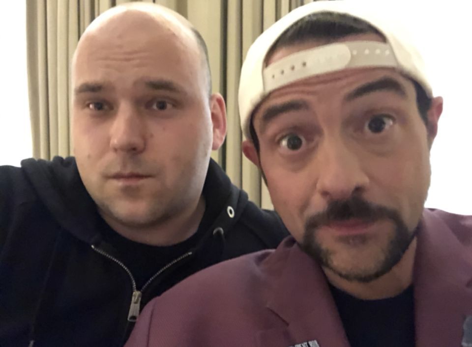Kult-Filmemacher Kevin Smith und FILMSTARTS-Redakteur Christoph Petersen beim Interview in London.