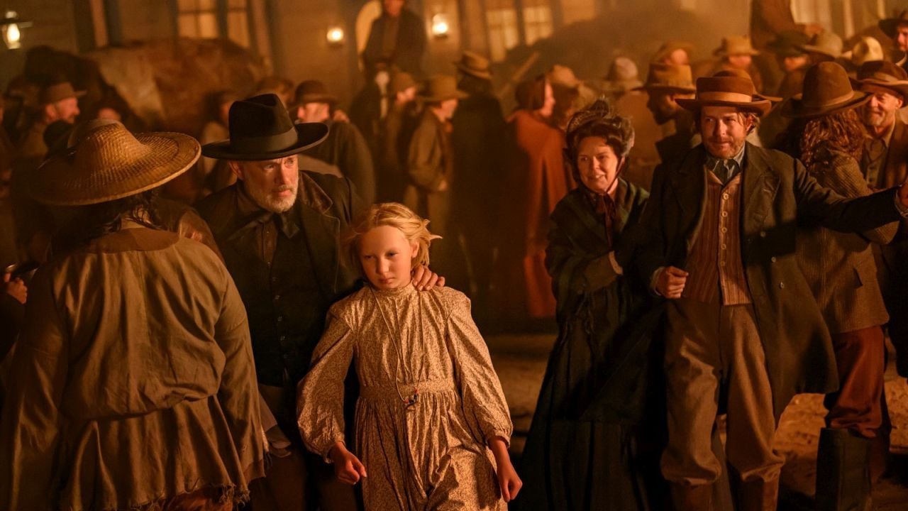 Ähnlich an der Oberfläche verhaftet bleibt „Neues aus der Welt“, wenn es darum geht, die realweltliche Macht des Geschichtenerzählens zu illustrieren: Im Verlade-Stützpunkt eines seine Männer übel knechtenden Bison-Fabrikantens (Thomas Francis Murphy) erzählt Captain Kidd verbotenerweise von tapferen Minenarbeitern, die sich aus eigener Kraft und ohne Hilfe ihrer Bosse aus einem eingestürzten Schacht befreit haben – eine Neuigkeit, die fast augenblicklich einen Aufstand anzettelt. Tom Hanks gutmütige Autorität hin oder her – glaubhaft ist das eher nicht.