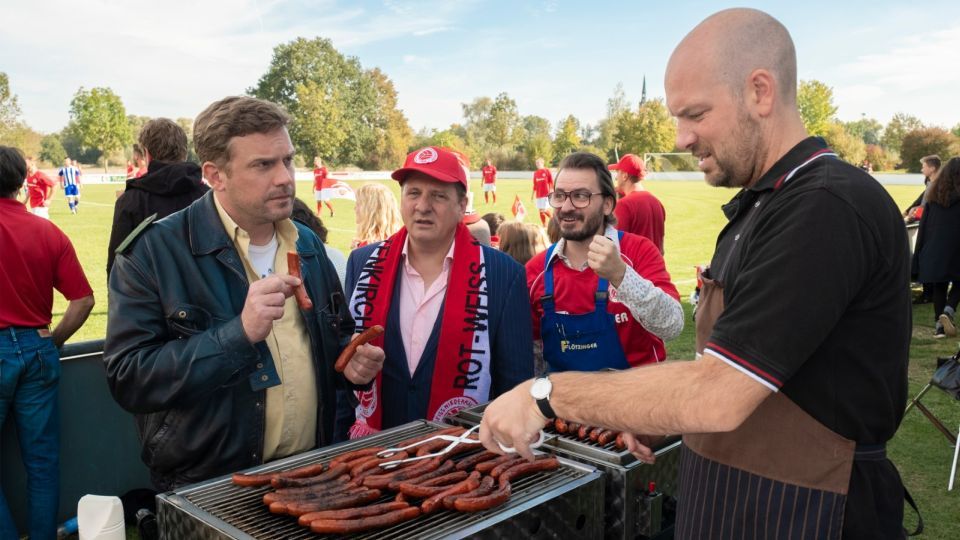 All die uns bekannten kauzig-urigen Einwohner des Dorfs mit dem wohl am wenigsten befahrenen Kreisverkehr im gesamten Freistaat Bayern sind wieder mit dabei - und jeder hat mindestens einen witzigen Auftritt, ohne dass dieser erzwungen oder wie plumper Fan-Service wirken würde. Schließlich bringen die Szenen Eberhofers Ermittlungen allesamt auf manchmal unerwartete Weise ein kleines Stück voran oder werfen zumindest ein neues Licht auf sie. Selbst die Newcomer fügen sich da problemlos ein. Eva Mattes („Lena Lorenz“) etwa gibt die abwechselnd wie ein Rohrspatz schimpfende oder vor der Nase des darbenden Protagonisten genüsslich die herrlichsten Hausmacher-Leckereien in sich hineinstopfende Besitzerin der abgebrannten Pension, in der das Opfer wohnte. Robert Stadlober („Sonnenallee“) und Frederic Linkemann („Sweethearts“) spielen ein schwules Hipster-Pärchen, das sich schon allein dadurch verdächtig macht, dass es viel besser ins gentrifizierte Münchener Glockenbachviertel passen würde als an diesen eher hinterwäldlerischen Ort. Allein Ex-Bayern-München-Profi Klaus Augenthaler sorgt mit seinem extrem hölzernen und unbeholfenen Spiel als Trainer des lokalen Sportvereins für gewisse Irritationen.