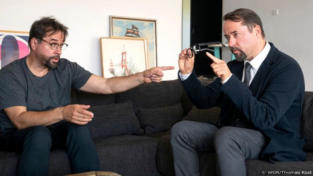 Stattdessen ist unter Regie von Matthias Tiefenbacher („Extraklasse“) erneut der Weg zur Überführung der Täterin das Ziel: Höhepunkt des durchaus kurzweiligen Verwirrspiels und der Jagd auf die Mörderin ist die Sequenz, in der sich Boerne selbst zu begegnen glaubt und Hauptdarsteller Jan Josef Liefers („Vier gegen die Bank“) in einer sympathischen Doppelrolle gleichzeitig den selbstverliebten Forensiker und einen abgehalfterten Jazzmusiker spielt. Das gelingt ihm deutlich besser als seinem Kollegen Axel Prahl („Das Ende der Wahrheit“), der in seiner Zweitrolle mit albernem Hut und aufgeklebtem Schnurrbart der Lächerlichkeit preisgegeben wird – und der dabei nicht halb so authentisch wirkt wie als brummiger Kommissar. Ansonsten halten sich die Albernheiten in Grenzen: Anders als in manch anderer „Tatort“-Folge aus Münster driftet das Geschehen nie in den Slapstick ab. Echte Spannungsmomente sucht man aber vergeblich, und auch Gewaltdarstellungen hat das Publikum nicht zu befürchten: Brachte im umstrittenen „Tatort: Für immer und dich“ zuletzt schon das Töten eines Hundes die deutsche Volksseele zum Kochen, geht in Münster alles seinen gewohnten, harmlosen Gang. Der Zuschauer will’s, der Zuschauer kriegt’s.