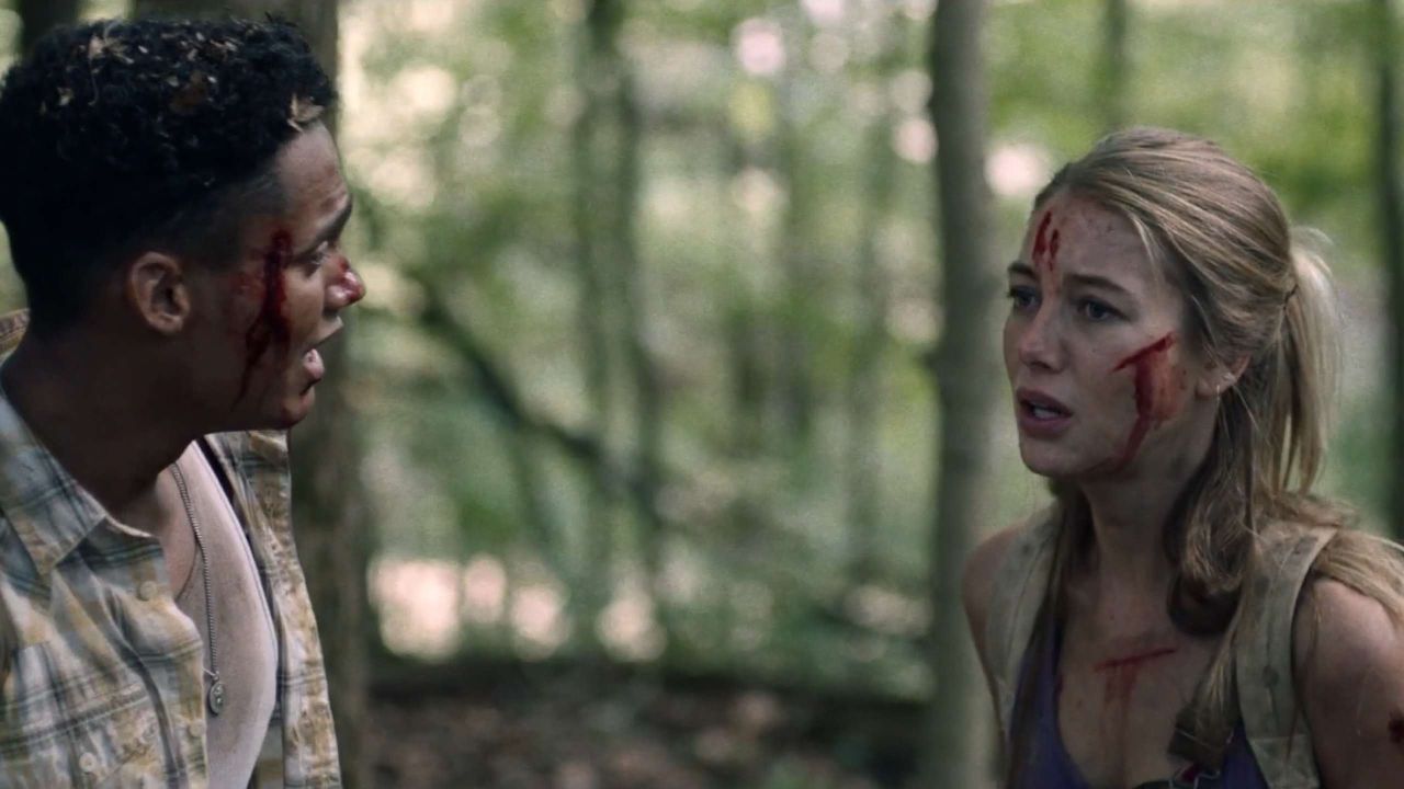 Parallel dazu sehen wir, wie Jen (Charlotte Vega) sechs Wochen zuvor mit ihrem Freund Darius (Adain Bradley) sowie zwei weiteren befreundeten Paaren zu der Bergwanderung aufbricht. Allerdings endet der Trip schnell in der Katastrophe: Ein den Abhang herunterrollender Baumstamm zerquetscht Gary (Vardaan Arora) – und offenbar ist auch sonst das ganze Waldgebiet um sie herum voll von tödlichen Fallen…