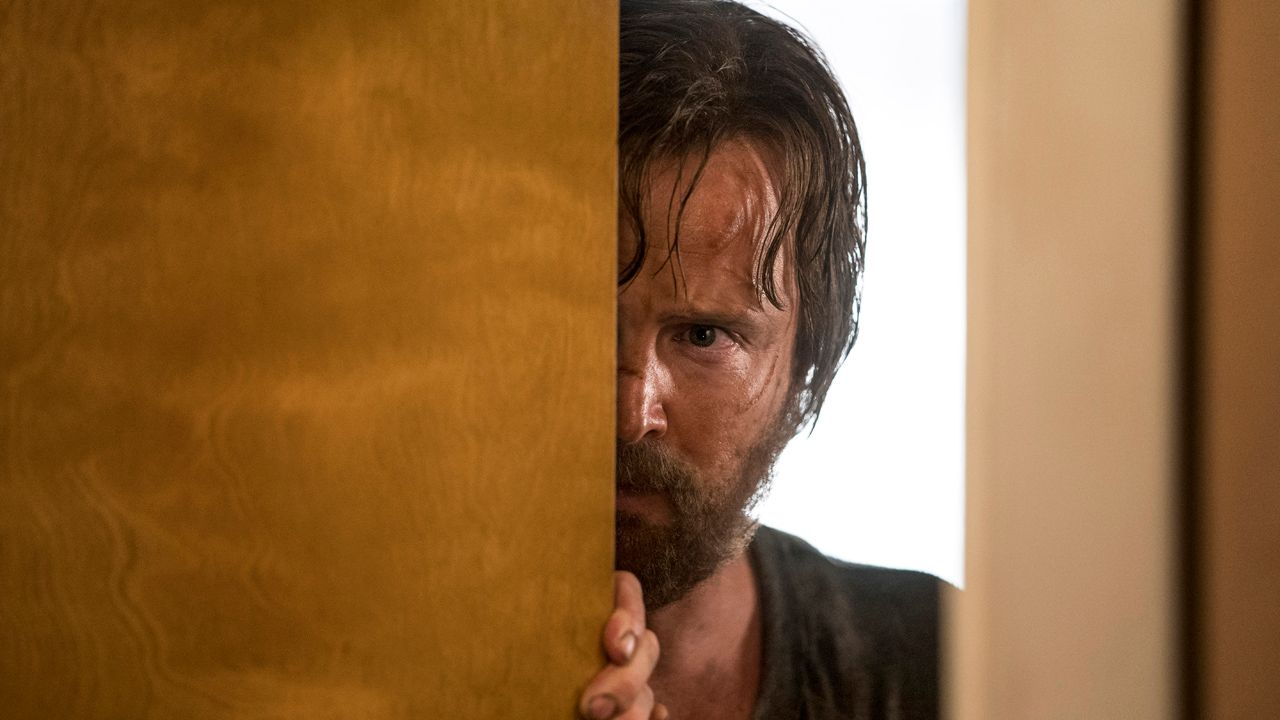 Auch bei den Rückblenden liegt der Fokus vor allem auf Jesse, auf der Darstellung seines völligen Zusammenbruchs, von dem nicht nur die Narben an seinem Körper, sondern auch die ständigen Albträume und die Pistole, die er sogar unter die Dusche mitnimmt, zeugen. Gilligan ist so nah an Jesse, dass es eigentlich nur eine etwas längere Sequenz ohne Aaron Paul gibt (selbst die Arbeit der Ermittlungsbehörden sieht man nur in TV-Berichten). Der Schauspieler beweist einmal mehr, dass dies seine Paraderolle ist, dass er nicht umsonst in „Breaking Bad“ so brilliert hat wie in keiner anderen Serie und keinem Kinofilm davor und danach. Obwohl er mittlerweile sechs Jahre älter ist (und es sogar Rückblenden noch weiter in die Vergangenheit gibt), braucht es keine digitalen Effekte, um Paul glaubwürdig wieder zu Pinkman zu machen und den Zuschauer wieder um die geliebte Figur bangen zu lassen.