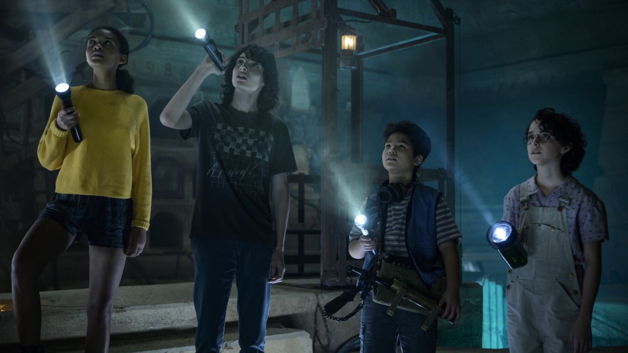 Nach einem kurzen Prolog, in dem wir sehen, wie der alte Mann auf seiner Farm ums Leben kommt, gibt es in „Ghostbusters: Legacy“ erstaunlich lange keine Geister. Stattdessen nimmt sich der Film – gerade für heutige Hollywood-Blockbuster-Verhältnisse – unheimlich viel Zeit, um zunächst einmal seine Figuren vorzustellen: Neben dem frühreifen Möchtegern-Aufreißer Trevor und der wissenschaftsaffinen, gute schlechte Witze reißenden Außenseiterin Phoebe gibt es noch den Mitschüler Podcast (Logan Kim) und den coolen Lehrer Mr. Grooberson (Paul Rudd), der seine Klasse mit Horrorfilmen wie „Cujo“ oder „Chucky“ ruhigstellt, um sich selbst seinen Erdbebenforschungen widmen zu können.