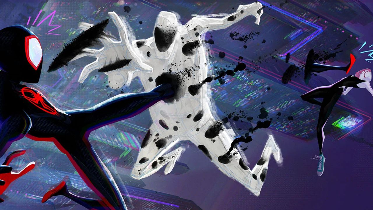 In „Spider-Man: Across The Spider-Verse“ wird einem nie einfach erzählt, dass eine Welt anders ist – nur weil etwas das Geld als Zahlungsmittel überholt ist oder Pizza in Form von Bällchen gegessen wird. Stattdessen kann man es immer selbst sehen, ja sogar förmlich erleben. Jedes Paralleluniversum hat seinen eigenen visuellen Stil, der nicht nur zu spüren ist, wenn man etwa in die völlig überfüllte Metropole von Spider-Man India (Karan Soni) eintaucht, sondern auch dann, wenn die verschiedenen Spideys sich im gemeinsamen Hauptquartier begegnen.