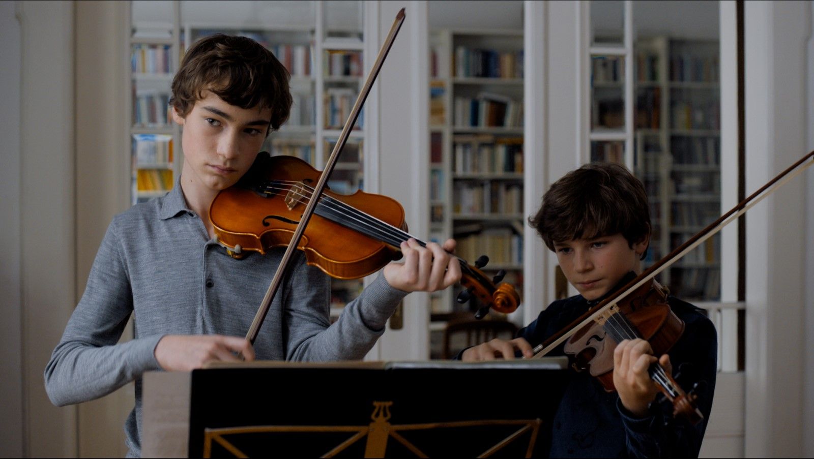 Sohn Jonas (rechts) und Schüler Alexander liefern sich ein Duell um die Gunst der Geigenlehrerin.