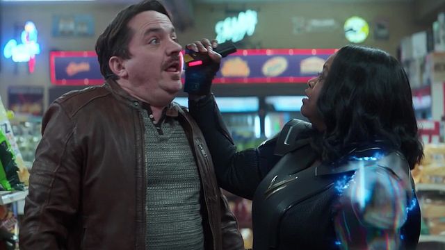 Bei einem halbwegs funktionierenden Film würden solche offensichtlich übers Ziel hinaus- und am sonstigen Ton des Projekts vorbeischießenden Improvisationen maximal in den Outtakes oder direkt auf dem Boden des Schneideraumes landen. Aber in „Thunder Force“ geht die Date-Szene minutenlang immer weiter – und es ist auch klar warum: Zum einen ergibt hier ohnehin nichts Sinn, da kann man also auch nichts mehr kaputtmachen – und zum anderen sind es die einzigen Minuten, die aufgrund ihrer unpassenden Absurdität zumindest mild unterhalten.