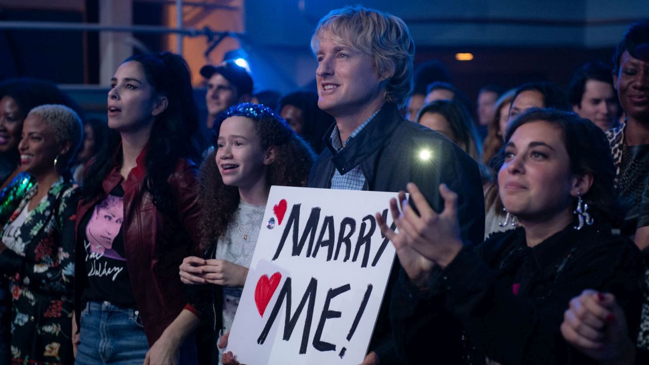 Kat steht also völlig geschockt im Hochzeitskleid auf der Bühne – und bittet kurzerhand den geschiedenen Mathematiklehrer Charlie Gilbert (Owen Wilson), der nur zufällig ein „Marry Me“-Schild hochhält, um seine Hand. Und der sagt auch Ja, wenn auch nur, um die niedergeschlagene Kat nicht noch tiefer fallen zu lassen. Schließlich war er bislang gar kein Fan, sondern wurde bloß von seiner Kollegin Parker (Sarah Silverman) mitgeschleppt, um bei seiner Teenie-Tochter Lou (Chloe Coleman) Sympathiepunkte zu sammeln. Plötzlich sind Kat und Charlie also verheiratet – aber kann daraus mehr werden als nur ein total verrückter Publicity Stunt?
