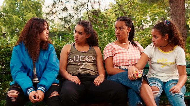 Nedjma (ganz rechts: Lina El Arabi) und ihre Clique verteidigen „ihre“ Bank im Park notfalls auch bis aufs Blut.