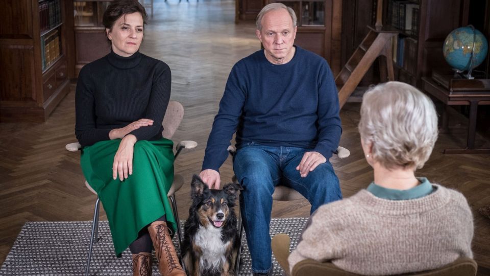 „Und wer nimmt den Hund?“ ist ein Paradebeispiel deutscher Schauspielkunst. Ulrich Tukur (Deutscher Filmpreis für „John Rabe“, Grimme-Preis für „Tatort“) und Martina Gedeck (Deutscher Filmpreis für „Das Leben ist eine Baustelle“, Goldene Kamera für „Das Ende der Geduld“), beide hochdekorierte Veteranen ihrer Zunft, stacheln sich gegenseitig zu Höchstleistungen an, wenn es darum geht, die Psyche des anderen zu erforschen oder gar offenzulegen. Dabei nutzen sie die ganze Bandbreite ihres Talents, das vom nuancierten Mienenspiel über geschliffen scharfe Oneliner bis hin zum physischen Einsatz reicht. Festgehalten werden die Performances dabei von Kaufmanns langjährigem Kameramann Klaus Eichhammer (auch schon bei „Stadtgespräch“ mit an Bord), der oft ganz nah rangeht an die ausdrucksstarken Gesichter der Protagonisten, vor allem wenn sie sich im Zimmer der Therapeutin befinden.