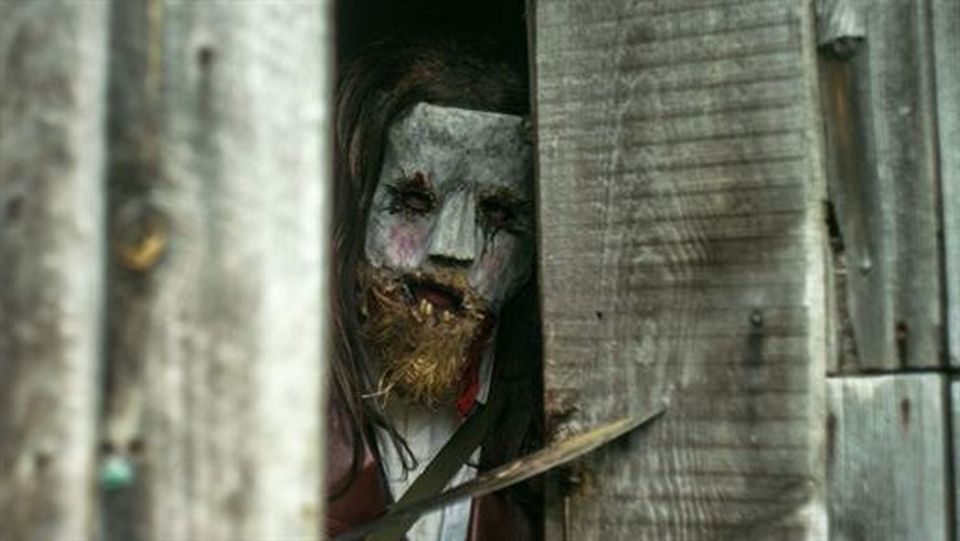 Die erste Szene des Films ist im Grunde genommen fast schon eine Mogelpackung. Da rennt ein blutüberströmter, nackter Mann panisch über ein Feld, hinter ihm ein maskierter Killer, der das Gewehr bereits gezückt hat und seinem Opfer obendrein auch noch einen Arm abhackt. Dieser brutale Auftakt könnte so auch aus einem klassischen Slasherfilm stammen, doch bevor „Making Monsters“ zu diesem Genre zurückkehrt, vergehen fast 70 Minuten – und dann ist der Film eigentlich auch fast schon wieder vorbei. Wer sich von „Making Monsters“ also ein klassisches Backwood-Gemetzel erwartet, wird vermutlich eher enttäuscht. Justin Harding verbringt stattdessen lieber die meiste Zeit des Films damit, seine Figuren und mit ihnen das Publikum im Dunkeln tappen zu lassen, wer oder was dem Influencer-Pärchen in der abgelegenen Kirche denn nun so übel mitspielt. Das klingt in der Theorie erst einmal spannend, ist es aber aufgrund der unbeholfenen Umsetzung nur selten.