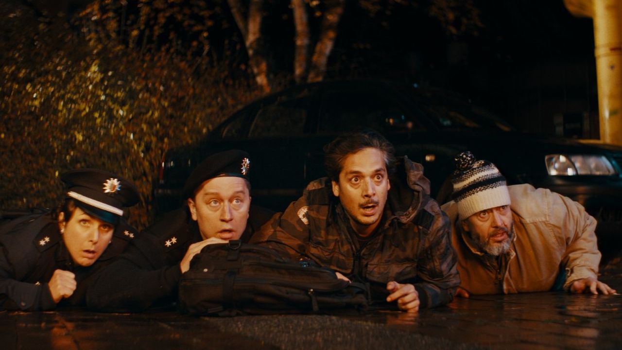 Bjarne Mädel („Der Tatortreiniger“) macht als obdachloser Trinker, der sich von der Polizei für einen gefakten Deo-Raub einspannen lässt, eine gewohnt starke Figur. Trotzdem ist es erfreulich, dass sich in „Faking Bullshit“ ansonsten mal nicht die immergleichen deutschen Comedy-Gesichter tummeln: Erkan Acar beweist eindrucksvoll, dass der mit seinem gewitzten Charme locker auch einen ganzen Film auf seinen Schultern tragen kann. Alexander Hörbe, Sanne Schnapp und Adrian Topol als Möchtegern-Rambo sind zudem supersympathische Kleinstadt-Cops, denen man gern dabei zusieht, wie sie sich mehr schlecht als recht als Kleinkriminelle verdingen.