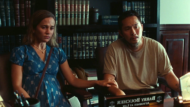 Aber auch die Rolle der sterbenskranken Frau fügt „Blue Bayou“ nur noch eine weitere Dimension an Tragik und Trauer hinzu. Ähnliches gilt für Antonios ebenso duldsame wie willensstarke Ehefrau. Alicia Vikander (Oscar für „The Danish Girl“) steuert dabei eine der besonders kitschigen Szenen bei, wenn Kathy auf einer Feier zum Mikrofon greift und mit feuchten Augen und belegter Stimme eine eigene Version des Liedes singt, das dem Film als Titel dient.