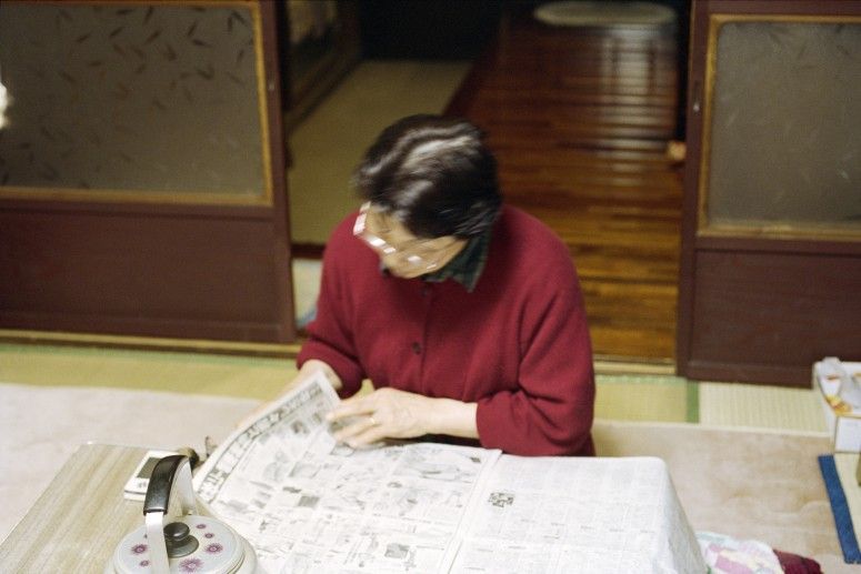 Tayoko beim Zeitungslesen.