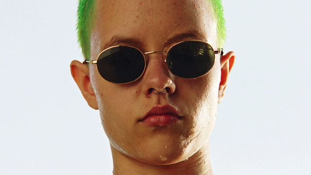 Von Janick NoltingDie Welt leuchtet mal wieder in Neon. Bunte Lichtstimmungen durchziehen diesen Film, flackernde, flirrende Farben. Mittendrin ein giftgrüner Schopf: Elina (Elsi Sloan) mit ihren kurzgeschorenen Haaren, nach vorn gekrümmter Körperhaltung, Piercing, durchdringendem Blick. Mit Kopfhörern stapft sie umher, rappt Verse in die Nacht. Das „Ich“ ihrer Liedzeilen wird zur Kampfansage gegen die Welt: Schicksal, Tsunami, Naturgewalt, nennt sich Elina. Schon früh begibt sich „Heartbeast“ in Angriffshaltung.