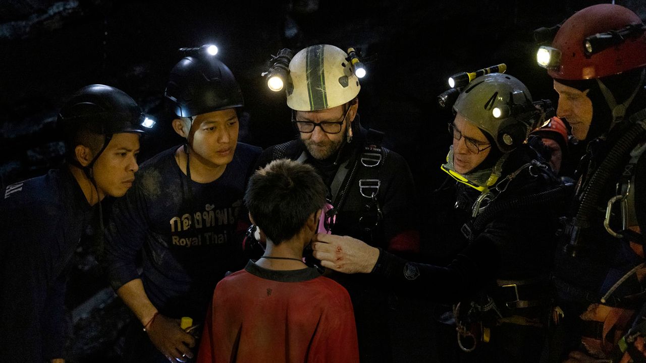 23. Juni 2018: Während die Fußball-Weltmeisterschaft der Männer die Welt fesselt, beschließen ein paar thailändische Kicker, im Anschluss an ihren Nachmittag auf dem Bolzplatz die nahegelegene Tham-Luang-Höhle zu erkunden. Die zwischen elf und 16 Jahre alten Jungs kennen den Ort aus früheren Touren, ihr Fußballtrainer (Teeradon Supapunpinyo) kommt trotzdem mit: Sicher ist sicher. Doch unbemerkt von ihnen setzen kurz nach dem Betreten der Höhle überraschend starke Regenfälle ein. Als die besorgt an den Eingang eilenden Eltern dort ankommen, sehen sie nur noch Wasser. Die noch in der Nacht beginnende Rettungsaktion scheint zunächst aussichtslos. Selbst die innerhalb weniger Stunden am Ort des Geschehens eintreffenden Elite-Taucher der thailändischen Armee kommen nur ein Stück weit voran, bevor sie die reißenden unterirdischen Strömungen teilweise schwer verletzt zur Umkehr zwingen.
