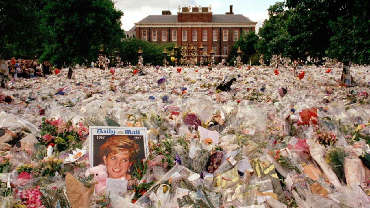 Das Blumenmeer nach dem Tod der Prinzessin der Herzen, zu dem Königin Elizabeth berühmterweise erst (zu) spät einen Strauß dazugelegt hat.