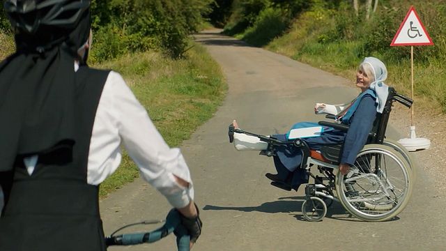 Richtiger Schwung kommt in die Angelegenheit, als sich die Nonnen bereits am Ziel wähnen, weil sie glauben, dass außer ihnen niemand mehr an dem Rennen teilnimmt. Denn just in diesem Moment taucht Mutter Oberin Joséphine (herrlich arrogant und herablassend: Sidse Babett Knudsen aus „Westworld“) auf. Véroniques Erzrivalin aus der Klosterschule will ebenfalls das Preisgeld gewinnen, um damit ihr eigenes Charity-Projekt zu unterstützen. Und sie hat dummerweise keinen schrägen Haufen unsportlicher, teilweise schon reichlich in die Jahre gekommener Damen hinter sich, sondern vier durchtrainierte und auf zwei Rädern offenbar mächtig talentierte Novizinnen.