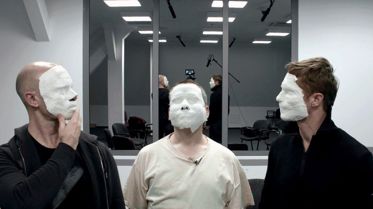 Die beiden Filmemacher verbergen sich gemeinsam mit ihrem Protagonisten hinter Masken.