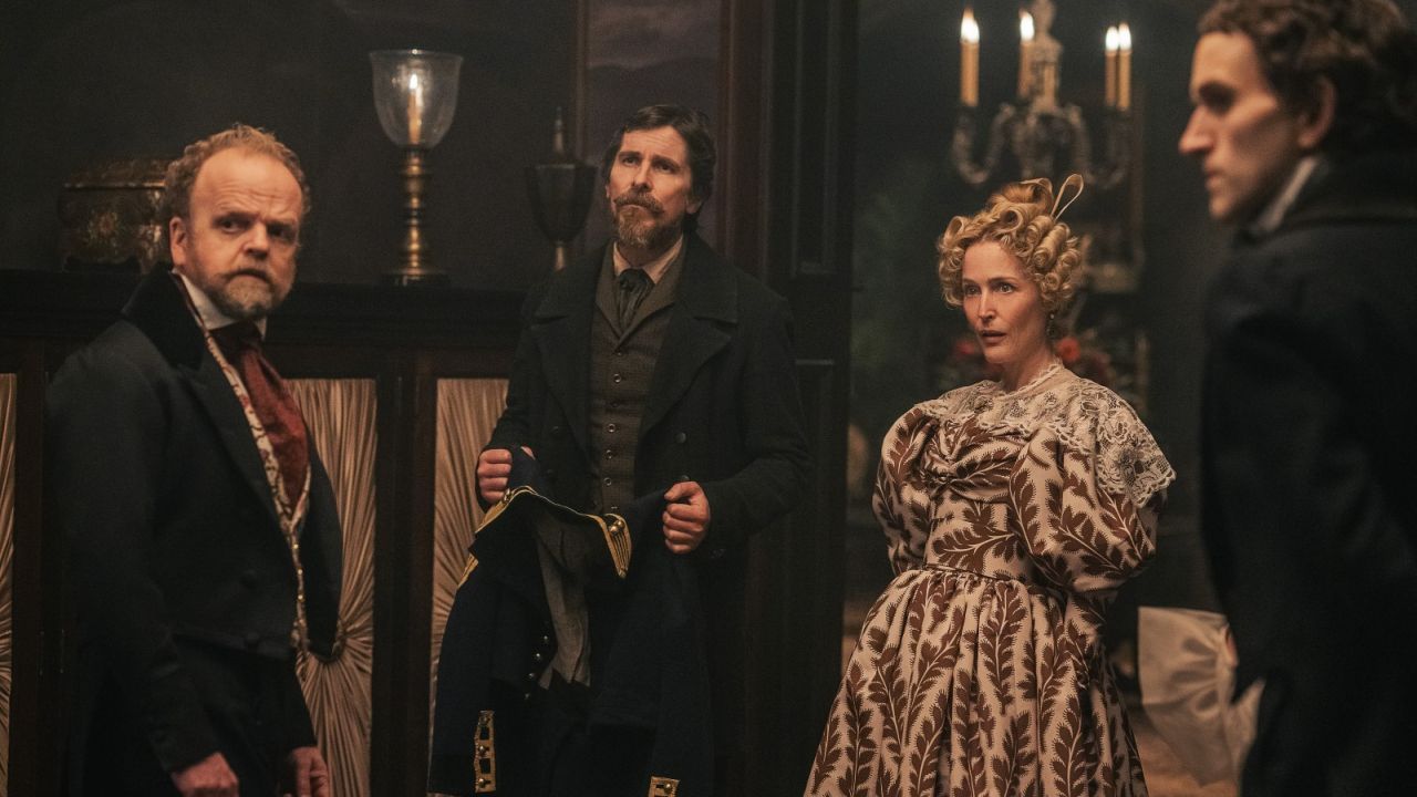 Edgar Allan Poe selbst auftreten zu lassen, birgt eine große Gefahr: die eines Biopics. Allzu viele Filme haben sich mal mehr, meist aber eher weniger erfolgreich an Biographien berühmter Autor*innen abgearbeitet und sich damit um eine Auseinandersetzung mit deren künstlerischen Schaffen herumgemogelt. Über Poes bewegtes Leben ist viel bekannt und doch hält Scott Cooper glücklicherweise nicht zu verbissen an der historischen Gestalt fest. Er verwandelt sie stattdessen in die fiktionalisierte Hälfte eines Ermittler-Duos.