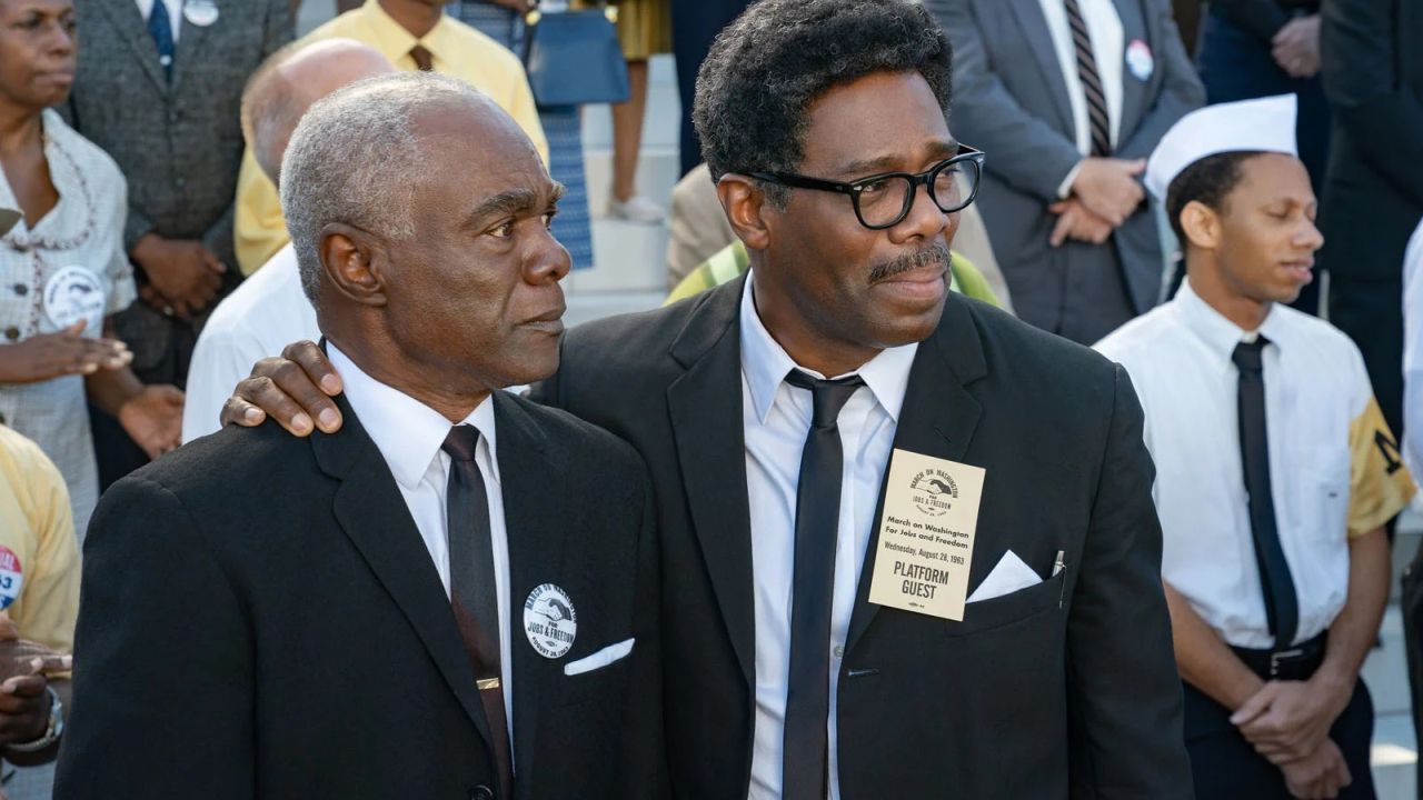 Einer der wesentlichen Architekten der Demonstration war der offen schwul lebende Bürgerrechtsaktivist Bayard Rustin, der beim Marsch selbst aber nicht öffentlich in Erscheinung trat. Rustin war eine große, aber meist im Hintergrund agierende Persönlichkeit – ein idealer Filmstoff also, um nicht nur die eh bekannten Bilder der Reden selbst zu reproduzieren, sondern auch hinter die Kulissen zu blicken. So möchte man zumindest meinen. Das simpel „Rustin“ betitelte Netflix-Biopic feierte seine Premiere zum 60. Jahrestag des „Marsch auf Washington“ und wurde von Barack und Michelle Obama mitproduziert. Regisseur George C. Wolfe („Das Glück an meiner Seite“) lässt sich trotz der einnehmenden Performance von Colman Domingo sowie jeder Menge authentischem Zeitkolorit allerdings zu leicht vom Kern seiner Hauptfigur ablenken.