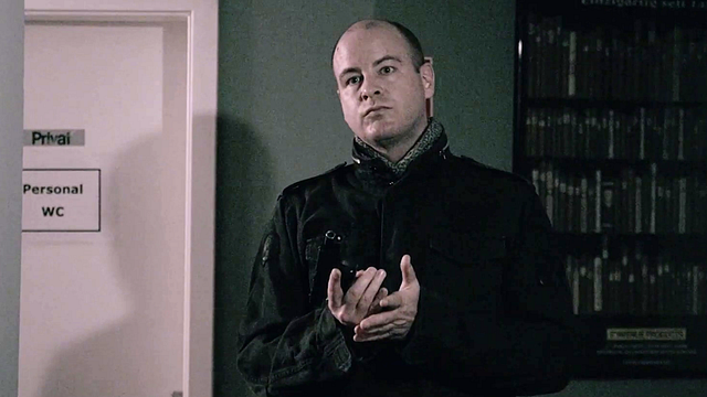 Der hält sich meistens in seinem Zimmer auf, wo er Gespräche mit eingebildeten Geheimagenten führt. Angetrieben von einer Mischung aus Größen- und Verfolgungswahn gewürzt mit wilden Verschwörungstheorien und gekränktem Narzissmus verfasst er wirre Pamphlete – bis es schließlich zum minutiös geschilderten Anschlag kommt. Das alles wird mit geradezu dokumentarischem Eifer betont kühl geschildert. Der eigentliche Film ist dann zu Ende. Es folgt aber noch ein Anhang, der aus einer etwas willkürlich wirkenden Montage besteht, in der u.a. Szenen mit Donald Trump, Björn Höcke, Anders Breivick und Attila Hildmann gezeigt werden. Schließlich taucht der Regie-Berserker in einem weiteren Abschnitt auch noch persönlich auf und führt das Publikum in den etwas salopp runtergefilmt wirkenden letzten Minuten durch die Originalschauplätze des Geschehens. Am Ende werden alle Opfer auf Schrifttafeln kurz vorgestellt.