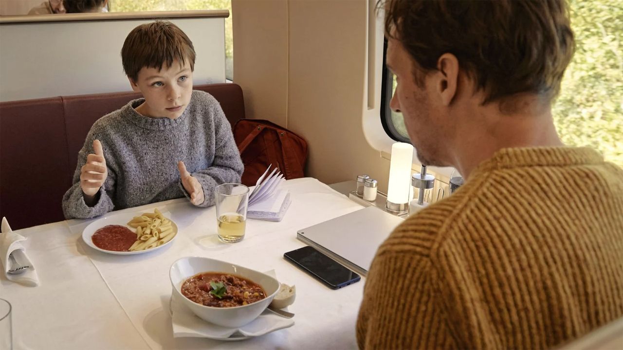 Es ist also schlicht ein unlösbares Dilemma, das Jason immer weiter erregt, bis er einfach laut losschreien muss. Am Ende fliegen Vater und Sohn irgendwo im Nirgendwo aus dem Zug. Der Moment unterstreicht ganz wunderbar, was in Jason für widerstreitende Interessen toben. Als zu einem deutlich späteren Zeitpunkt auf einem Bahnhof der Metal-Song „War Inside My Head“ dröhnt, kann der Junge seinem Vater das erste Mal erklären, wie es in ihm aussieht. In seinem Kopf tobe auch ein Krieg. Er wisse selbst, dass damals bei den Nudeln überhaupt keine Lösung alle seine Regeln erfüllt hätte – und trotzdem konnte er nicht von einer einzigen davon abrücken.