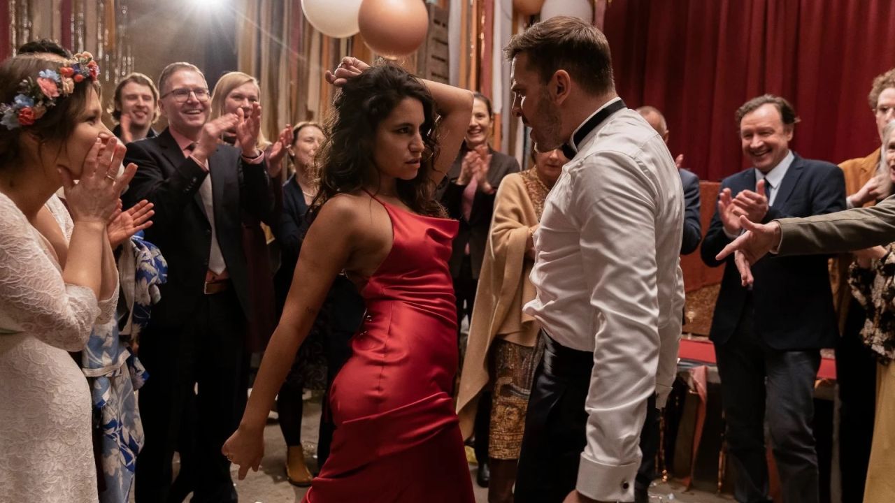 Da sich die Figuren weiterhin leidenschaftslos Steine in den Weg legen, ist es naheliegender, darauf zu hoffen, dass sie besser nicht zusammenfinden. Schließlich reicht es bei ihrer laschen Anti-Interaktion nicht einmal für das altmodische Sprichwort: „Was sich liebt, das neckt sich!“ Die recht einfallslose Inszenierung tut ihr Übriges, um den Funkenflug zu vermeiden. Allein, wenn Marie und Jakob die Hochzeitsfeier kapern, indem sie ihre Hassliebe in Form eines spontanen Dance Battles ausleben, entsteht vorübergehend die Illusion von Passion. Dass in diesem Moment keine Worte fallen, sondern allein die ausdrucksstarke Körpersprache des zentralen Star-Duos im Fokus steht, ist sicher kein Zufall.