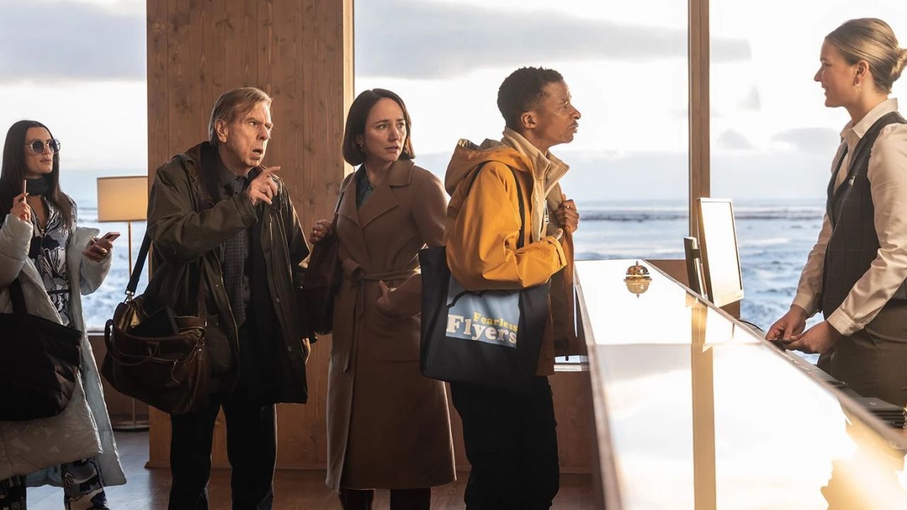 Die Figuren bleiben flach und merkwürdigerweise auch unsympathisch. Die Turbulenzen bei ihrem Flug nach Island sind zudem so stark, dass auch Vielflieger diese sicherlich nicht einfach so kaltlassen würden. Hier empfindet man eher Mitleid mit den Passagier*innen, als sich über ihre angstgesteuerten Gefühlsausbrüche zu amüsieren. Der von Simon Manyonda gespielte Gruppenleiter Charles schwankt nur zwischen Überforderung und Panik hin und her – und auch die übrigen Figuren sollen vor allem dadurch belustigen, dass sie in ihrer angespannten Lage ihre Fassung verlieren. Wenig überraschend stacheln sie sich alle gegenseitig bis zum absurd-hysterischen Finale auf.