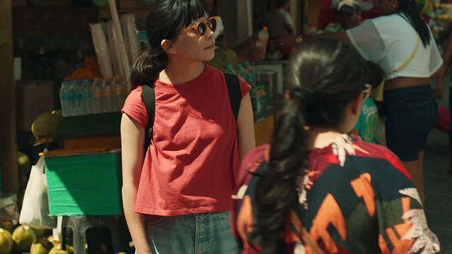 Dass es in „Sleep With Your Eyes Open“ mit einer solchen Perspektive zunächst nicht allzu weit her ist, zeigen bereits die Anfangsminuten, als Kai nach der telefonischen Trennungsnachricht ihres Freundes ihr Handy ins Flughafen-Klo fallen lässt. Und als ihr, in ihrer Urlaubsdestination Recife angekommen, ein Straßenverkäufer eines seiner Armbänder aufzudrängen versucht, und sie, ihre Gunst ersuchend, danach fragt, ob sie Japanerin sei. Wenig später versucht sie, Sonnencreme auf ihr Gesicht aufzutragen, doch dort vermischt sich diese mit den ihr hinunter kullernden Tränen.