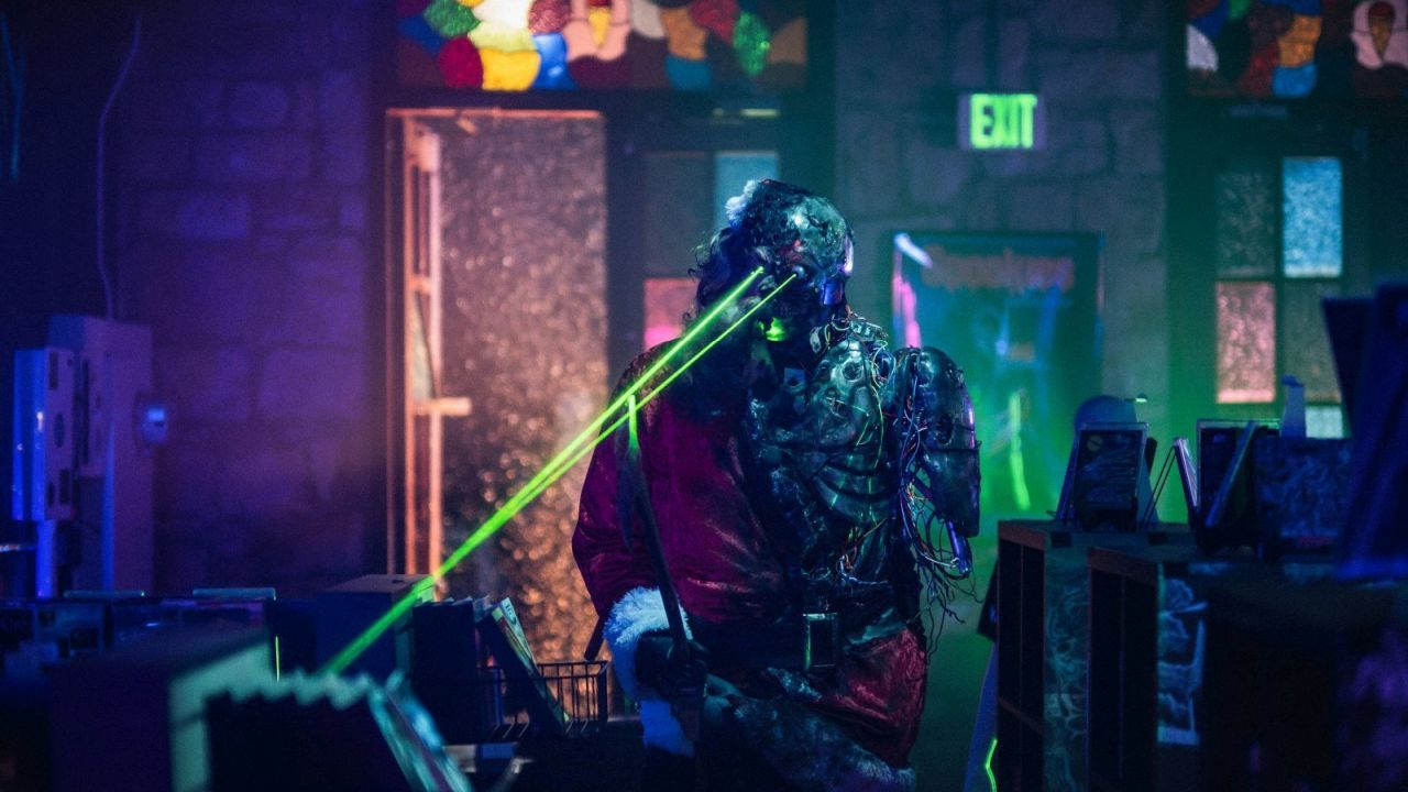 Ein gewalttätiger Weihnachtsmann ist dabei nach Werken wie „Santa’s Slay“, „Rare Exports“ oder jüngst „Violent Night“ zunächst einmal keine große Sensation mehr. Abgesehen von seiner mechanischen Natur: Mit surrenden Lauten bewegt er die künstlichen Glieder. Irgendwann schießt sogar grüner Laser aus seinen Augen. Einst wurde der RoboSanta+ als Waffe und Sicherheitsgarant für Kaufhäuser entwickelt. Jetzt wendet er sich gegen jene, die er eigentlich beschützen soll. Aber was ist er denn nun? Strafender Zerstörer oder militanter Ordnungshüter? Das ist die ambivalente Frage, die „Christmas Bloody Christmas“ in all dem Gemetzel aufwirft und bis zum Schluss nicht eindeutig beantworten will.