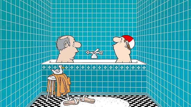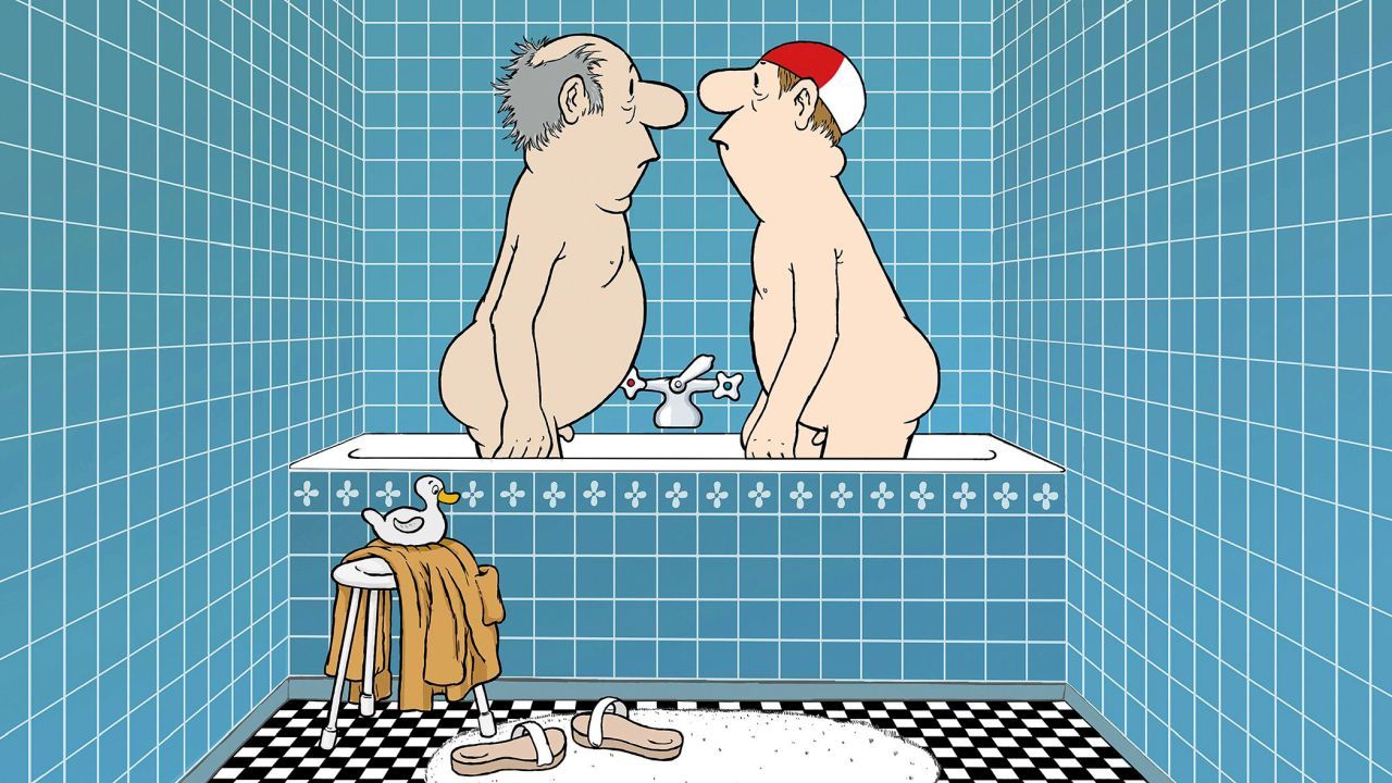 Die „Herren im Bad“ gehören nicht nur zu Loriots besten und bekanntesten Sketchen – sondern stehen mit an der Spitze der gesamten deutschen Humorgeschichte!