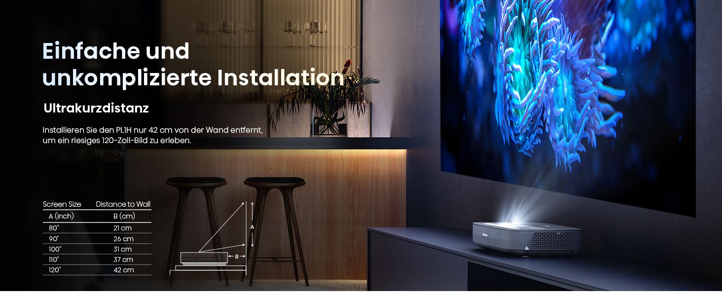 Das Hisense PL1SE Laser Cinema erzeugt Bilder, die in der Diagonale 80 bis 120 Zoll messen. Über diese Fläche hinweg erlebt ihr eindrucksvolle, lebhafte Farben und starke Kontraste. Als 4K-UHD-Beamer vermag es das Laser Cinema von Hisense gestochen scharfe Bilder an die Wand zu werfen. Aktuell bekommt ihr den starken Laser-Beamer zum günstigen Preis.