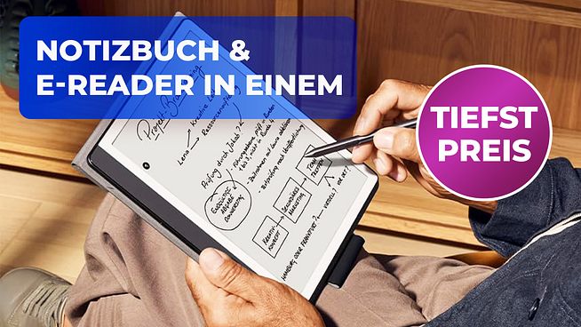 Amazon gibt eine Leistung von bis zu 12 Wochen an, bei einer halben Stunde Lesezeit pro Tag. Wer genauso viel schreibt, kommt immerhin bis zu drei Wochen mit einer einzigen Ladung aus. Der Kindle Scribe räumt mit dem Papierchaos auf und sammelt nicht nur eure Bücher, sondern auch eure Gedanken an einem Ort.