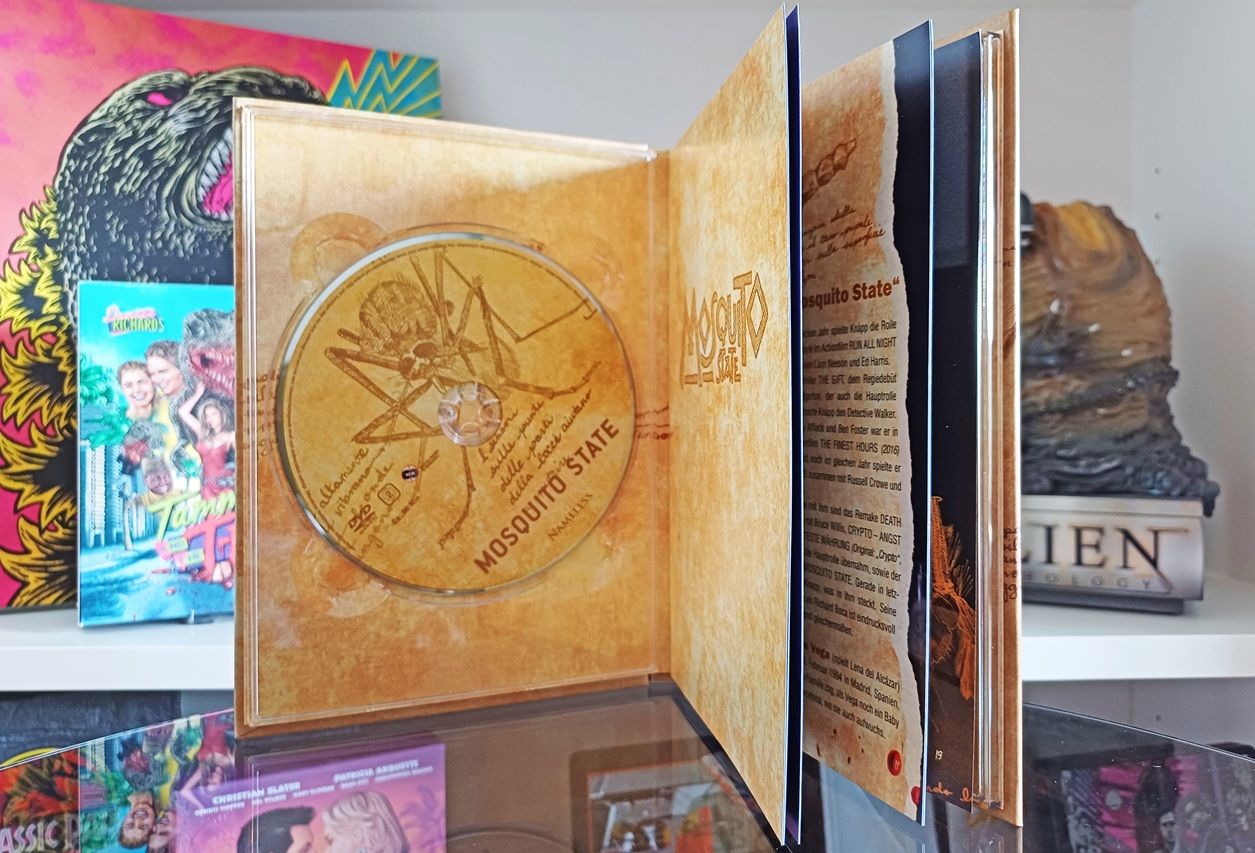 Nameless Media hat sich der Veröffentlichung des Films angenommen, den ihr seit dem 14. Mai 2025 erstmals auf DVD und Blu-ray bekommt. Ihr habt die Qual der Wahl zwischen gleich drei limitierten Auflagen, die ihr aktuell noch im Shop von EYK Media erstehen könnt. Denn „Mosquito State“ ist im Mediabook-Trio erschienen! (Amazon listet die Limited Editions zwar ebenfalls, bestellen könnt ihr sie dort aktuell allerdings nicht.)