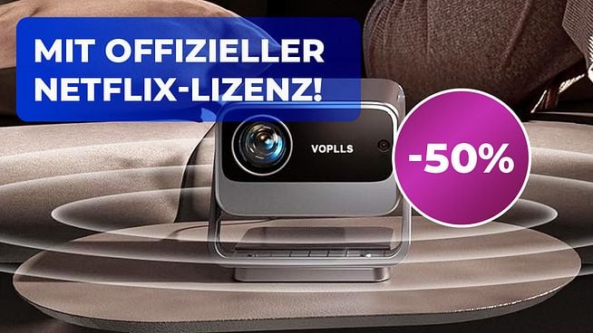 Günstige Beamer gibt es bei Amazon wie Sand am Meer. Deshalb ist es gar nicht so einfach, ein qualitativ hochwertiges Modell zu finden. Der VOPLLS Smart-Beamer mit Netflix-Integration* sticht jedoch heraus: Er ist nicht nur doppelt rabattiert und kostet somit nur die Hälfte, sondern bietet auch eine sehr gute Helligkeit. Ihr könnt auf der Produktseite eine von zwei Rabattaktionen wählen und den Beamer so für unter 150 Euro bekommen. Beide Aktionen sind leider nicht kombinierbar.