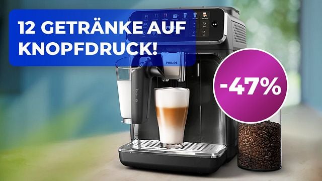 MediaMarkt zündet aktuell ein wahres Rabatt-Feuerwerk: Ein Highlight ist der Bestseller-Kaffeevollautomat Philips Serie 5400* mit fast 50 % Nachlass auf die UVP. Für unter 400 Euro erhalten myMediaMarkt-Kund*innen sehr viel Flexibilität und ein cleveres Milchschaumsystem.