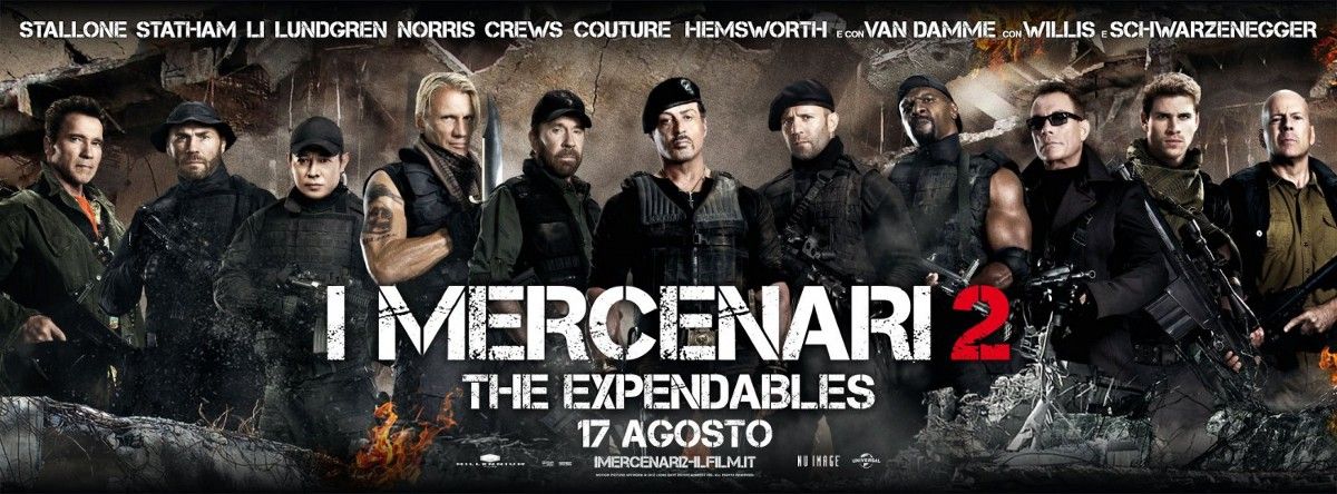 Lange ist es nicht mehr hin bis die Söldnertruppe um Sylvester Stallone (Kinostart 30. August) für ein weiteres explosives Abenteuer auf die große Leinwand zurückkehren wird. Dafür wurde jetzt ein neues italienisches Werbebanner zu "The Expendables 2" veröffentlicht, das den Altherren-Club noch einmal zusammen zeigt. Mehr Testosteron auf einem Bild ist kaum möglich.