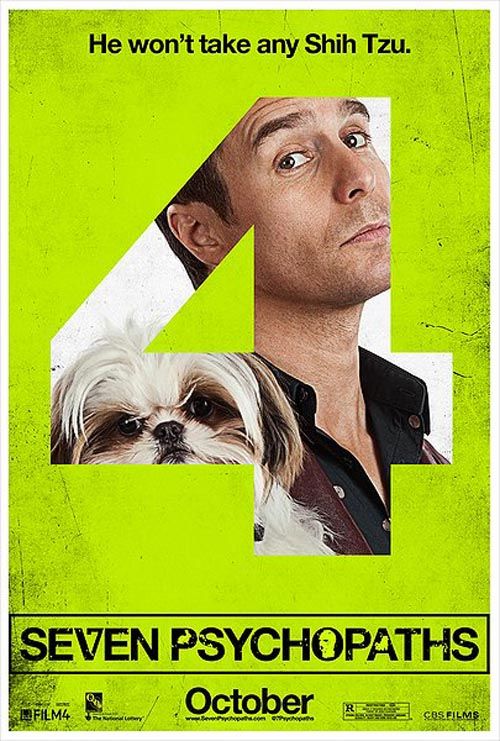 Das Plakat mit der Nummer 1, dem Bond-Girl Olga Kurylenko und einem pelzigen kleinen Vierbeiner präsentierten wir euch bereits gam Mittwoch, doch bei dem Filmtitel ist es nicht verwunderlich, dass noch weitere sechs Figurenposter folgen: Natürlich mit den "Seven Psychopaths". Dazu gehören neben Kurylenko auch Christopher Walken als Nicht-Gewalttätiger, Colin Farrell als anscheinend Normaler, Sam Rockwell als sein bester Freund sowie Abbie Cornish, Woody Harrelson und der Typ mit dem Kaninchen.