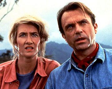 Und für diejenigen unter euch, die den Blockbuster noch nicht gesehen haben, hier eine kurze Inhaltszusammenfassung: Der reiche Unternehmer John Hammond (Richard Attenborough) errichtet auf einer südamerikanischen Insel einen kostenaufwendigen Freizeitpark der anderen Sorte. Denn seine Attraktionen sind nicht etwa Jahrmarktbuden und Fahrgeschäfte, sondern Dinosaurier, die mithilfe einer urzeitlichen DNA zum Leben erweckt wurden. Um den Park öffnen zu können, benötigt er die Zustimmung von Paläontologen. Also lädt er die dinosaurierbegeisterten Forscher Dr. Grant (Sam Neill) und Dr. Sattler (Laura Dern) sowie den Mathematiker Dr. Malcolm (Jeff Goldblum) ein. Doch bei der Generalprobe kommt dann alles anders als gedacht…
