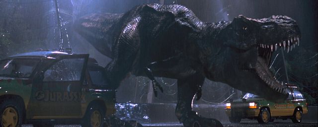 In "Jurassic Park" vollbringt ein reicher Unternehmer (Richard Attenborough) das schier Unmögliche: Mit Hilfe zahlreicher Wissenschaftler erweckt er die Dinosaurier erneut zum Leben und gestaltet einen Freizeitpark, in dem die Urviecher die Hauptattraktion sind. Um die Sicherheit des Parks prüfen zu lassen, engagiert er drei Fachleute (Laura Dern, Jeff Goldblum, Sam Neill). Zuerst sind die Forscher begeistert, doch schnell wird deutlich, dass man mit der Natur nicht so leichtfertig umgehen sollte – und sich vor einem T-Rex auf dem Klo zu verstecken, bringt rein gar nichts…