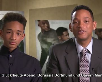 Bevor ihr "After Earth" am 6. Juni 2013 im Kino sehen könnt, gibt es bereits heute Abend das Champions-League-Finale zwischen dem alten deutschen Meister Borussia Dortmund und dem neuen und aktuellen deutschen Meister FC Bayern München zu sehen. Zum ersten Mal stehen sich damit zwei deutsche Mannschaften im Finale der Champions League gegenüber. In einer Videobotschaft wünschen Will und Jaden Smith den teilnehmenden Mannschaften viel Glück und präsentieren den aktuellen deutschen Trailer zu "After Earth".
