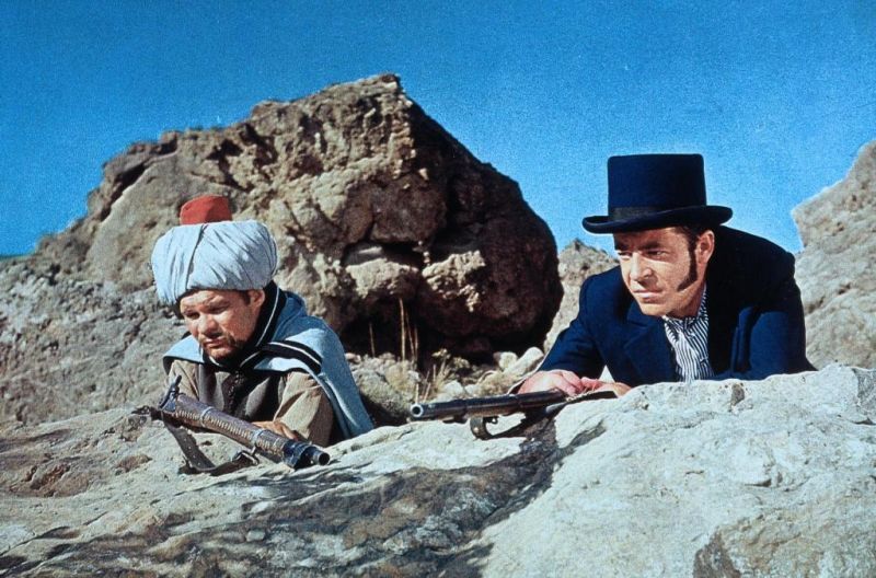 Chris Howland an der Seite von Ralf Wolter in der Karl-May-Verfilmung "Im Reiche des silbernen Löwen"