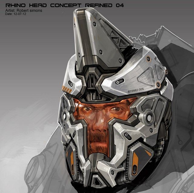 Neben den Entwürfen, die Rhino im Ganzen zeigen, veröffentlichte Simons auch Detail-Zeichnungen eines Helms für Spider-Mans Gegenspieler, die allerdings keine Verwendung fanden. "Der Helm wurde schließlich in den finalen Ausarbeitungen nicht mehr benötigt, also haben wir uns nicht abschließend mit dem Design beschäftigt, aber ich denke der Gedanke hat einen gewissen Reiz."