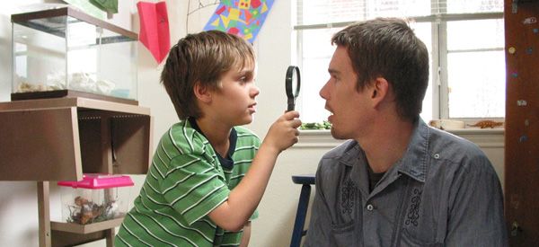 Mason (Ellar Coltrane) wirft beim Bowling eine Ratte, doch sein Vater Mason Sr (Ethan Hawke) muntert ihn auf - in „Boyhood“.