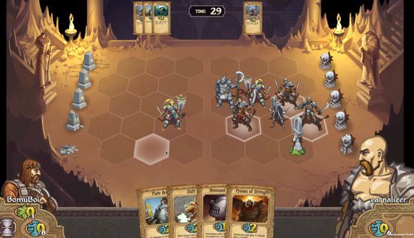 Sie kratzen sich am Kinn, rücken ihre Brillen zurecht, atmen noch einmal tief durch und bewegen ihre Figur quer über das Spielfeld, um ihrem Kontrahenten in die Bredouille zu bringen. Kein Spiel steht mehr für Intelligenz und Disziplin als Schach. Die im Central Park aufgestellten Schachspiele haben als beliebtes Motiv für Dutzende Filme hergehalten, die das kultivierte Leben von New York zelebrieren wollen. Im krassen Kontrast dazu stehen die wilden Turnier-Orgien auf Comic-Messen, bei denen vornehmlich Teenager die gebündelte Macht ihrer Sammelkartendecks von „Magic: The Gathering“ oder „Pokemon“ in die Schlacht schicken. Diese zwei vermeintlich so unterschiedlichen Welten finden nun ihre nahezu perfekt ausbalancierte Fusion in „Scrolls“ – dem neuen Spiel von „Minecraft“-Entwickler Mojang. Das clevere Zusammenstellen des eigenen Kartendecks inklusive dem Abwegen von individuellen Vor- und Nachteilen der verschiedenen Spielkarten ist in „Scrolls“ nur die halbe Miete. Die bedachte Platzierung der eigenen Einheiten, ihre strategische Bewegung über das in Sechsecke gegliederte Spielfeld und die Abwägung der eigenen sowie gegnerischen Ressourcen ist mindestens genauso wichtig, um den Sieg davonzutragen – und damit unterscheidet sich „Scrolls“ auch vom Rest des weiten Felds an digitalen wie auch physischen Sammelkartenspielen. Um einen weiteren Vergleich zu bemühen: „Scrolls“ spielt sich wie der etwas weniger hibbelige, grüblerische Bruder des aktuellen Genre-Primus „Hearthstone“.